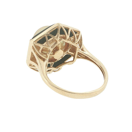 14K Yellow Gold South Sea Pearl, Onyx & Diamond Ring