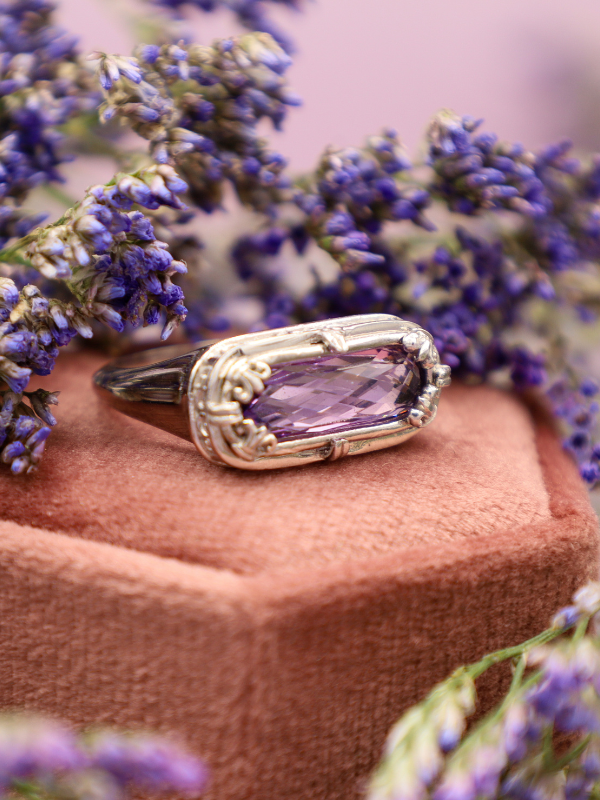 Amethyst is known for its layered violet tones—sometimes soft and misty, sometimes deep and saturated. February’s birthstone carries a sense of calm strength and quiet confidence, adding color that feels thoughtful rather than showy.