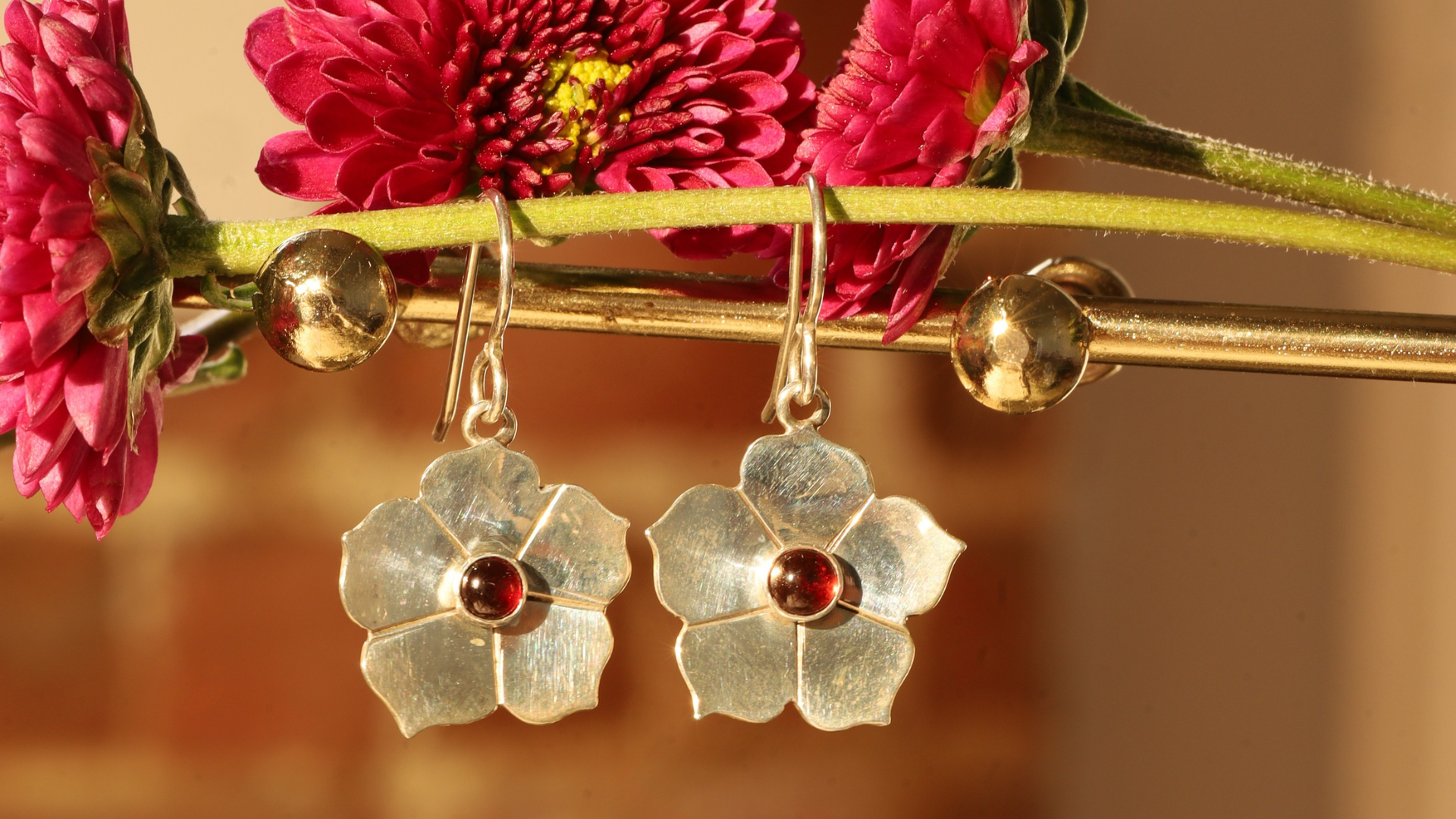 Vitrice McMurry Sterling Silver Garnet Flower Earrings