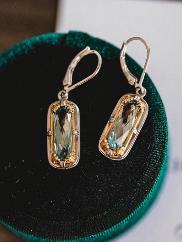 14K Yellow Gold Blue Topaz Mirrored Chain Necklace