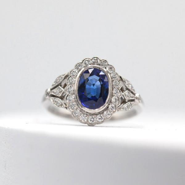 Estate Collection Art Deco Diamond & Sapphire Halo Ring