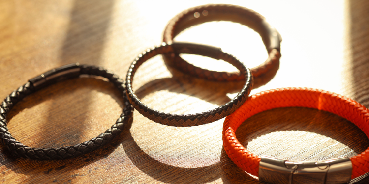 Stainless Steel Polished Orange Braided Leather Men's Bracelet