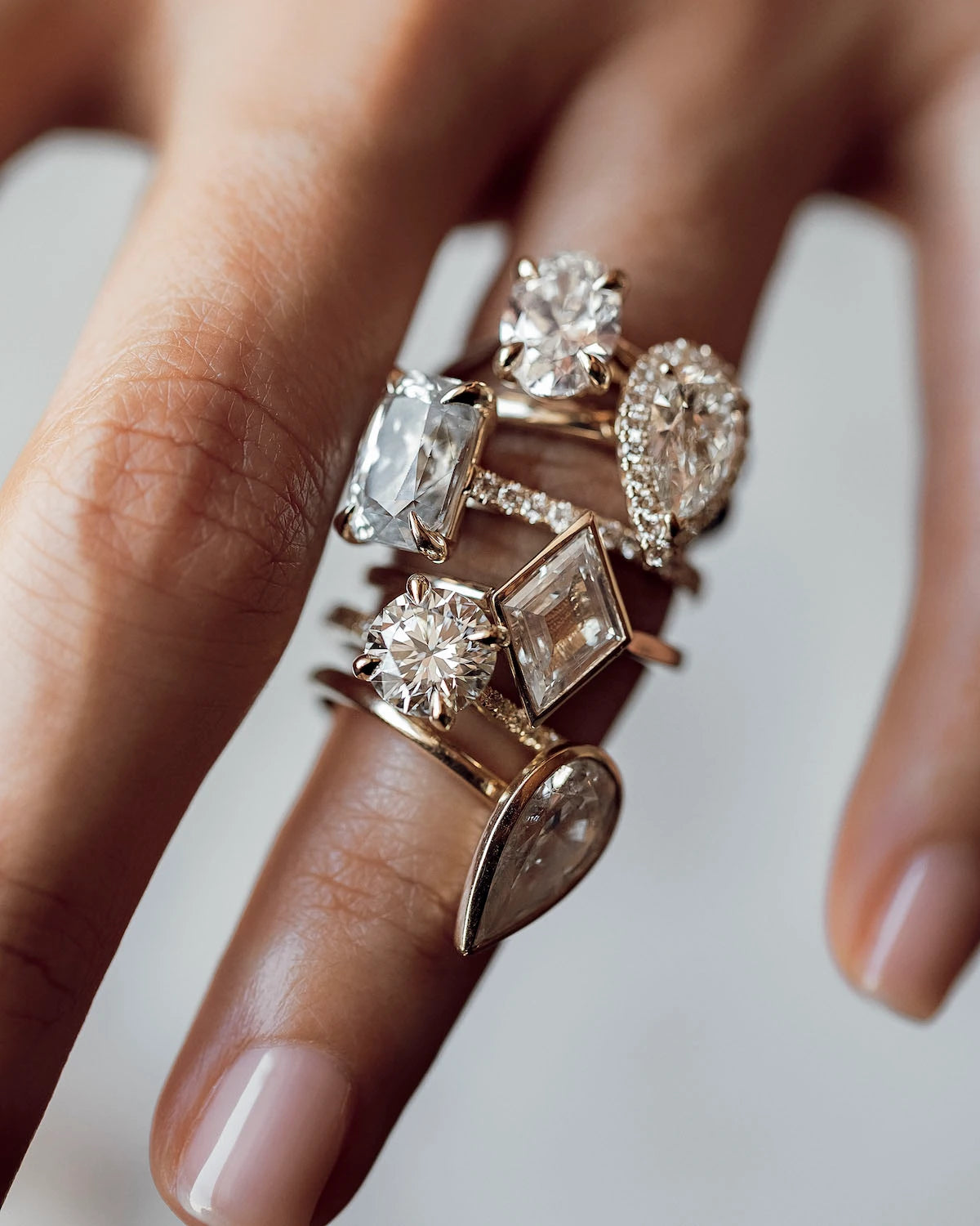 Diamonds come in a variety of shapes, each with its own unique characteristics and appeal. Some of the most popular diamond shapes include round, princess, cushion, emerald, oval, pear, marquise, and heart. Find the one that that represents your love.