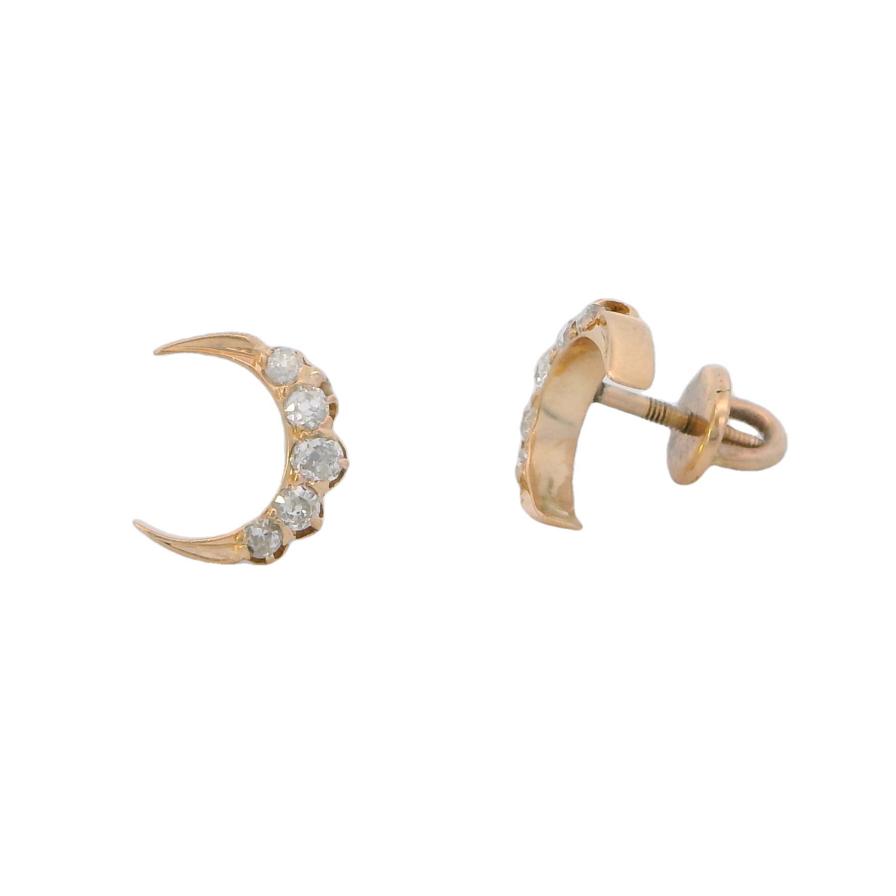 10K Yellow Gold Antique-Cut Diamond Crescent Moon Earrings