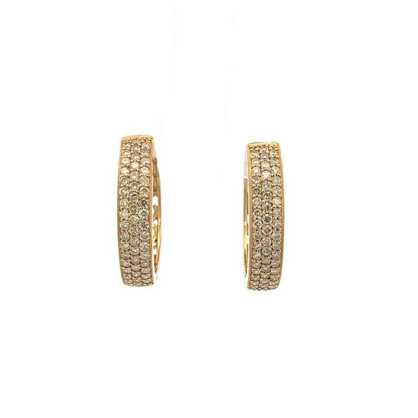 14K Yellow Gold 1.0ct Diamond Pave Hoop Earrings