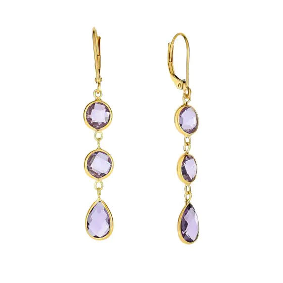 14k yellow gold cushion cut Amethyst briolette drop earrings on lever backs