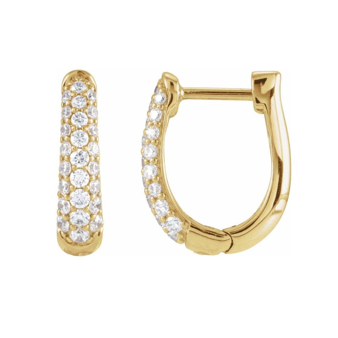 14K Gold Yellow 1/2CTW Diamond Huggie Hoop Earrings