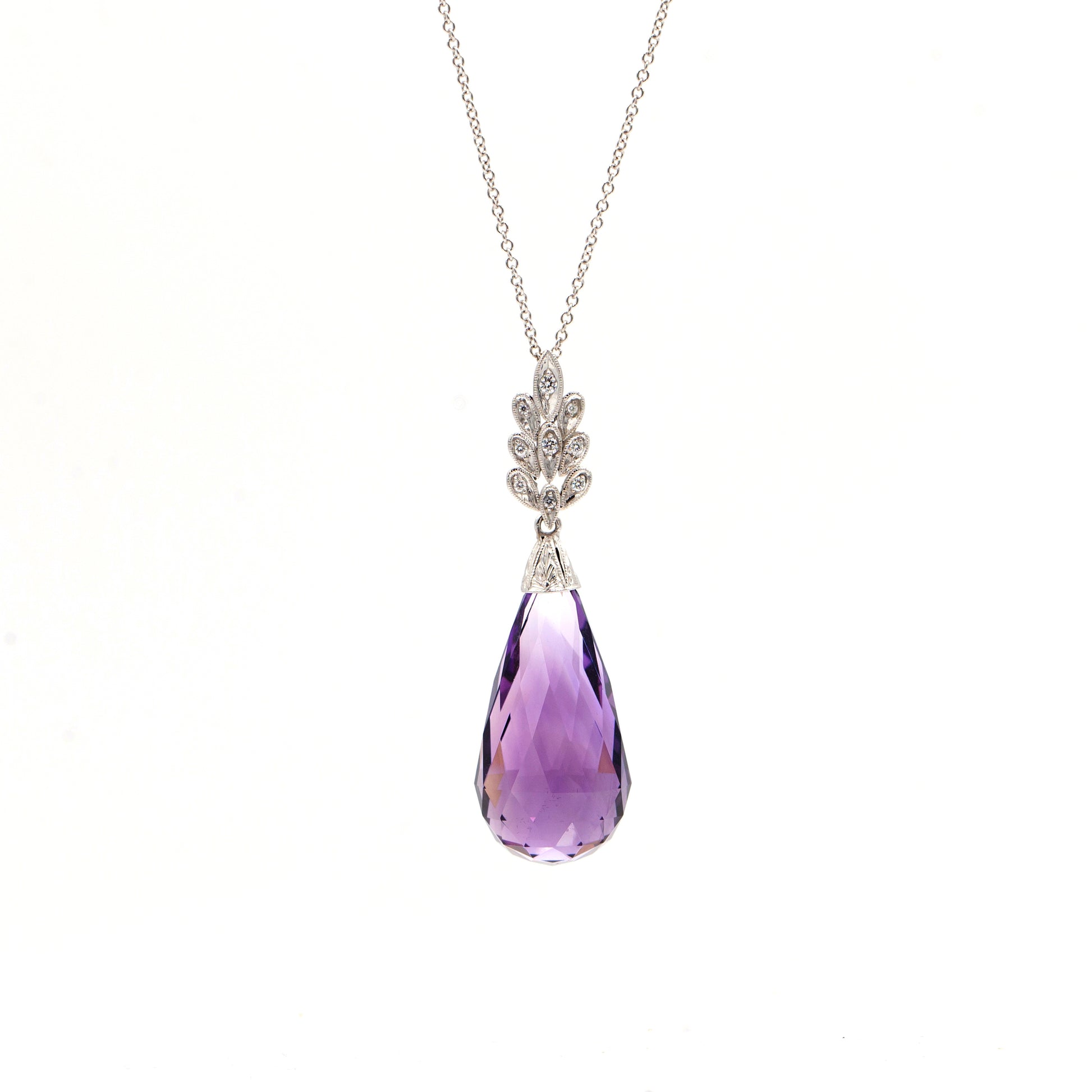 14K Gold Diamond & Amethyst Briolette Pendant