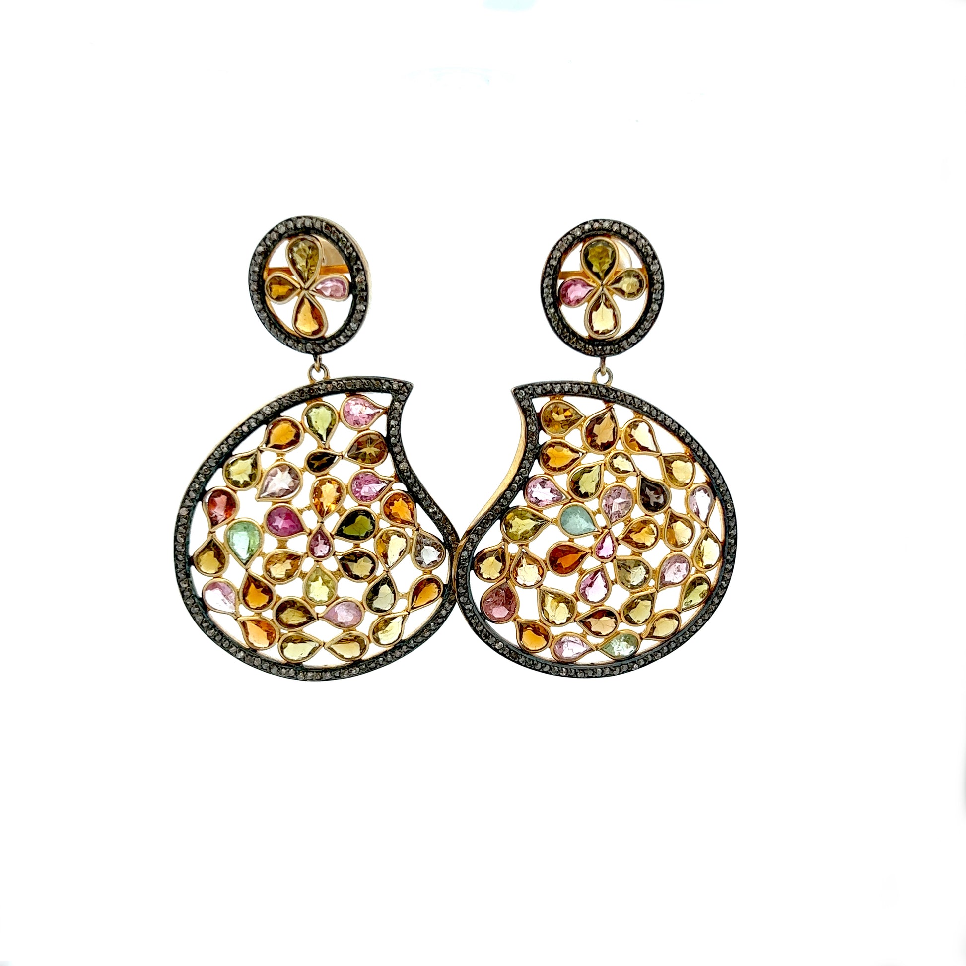 14K Gold-Plated paisley shapes with sparkly tourmaline surrounded by a diamond halo