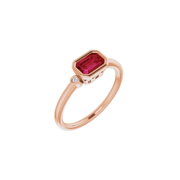14K Rose Gold Ring with 6x4mm Lab-Created Ruby & 0.02CT Lab-Created Diamonds