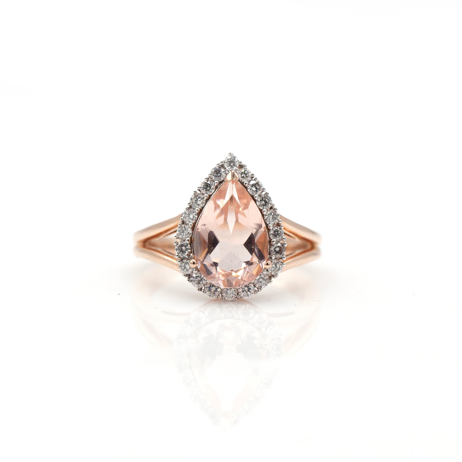 2.35ct Pear-shaped Morganite & 0.40ct Diamond Halo