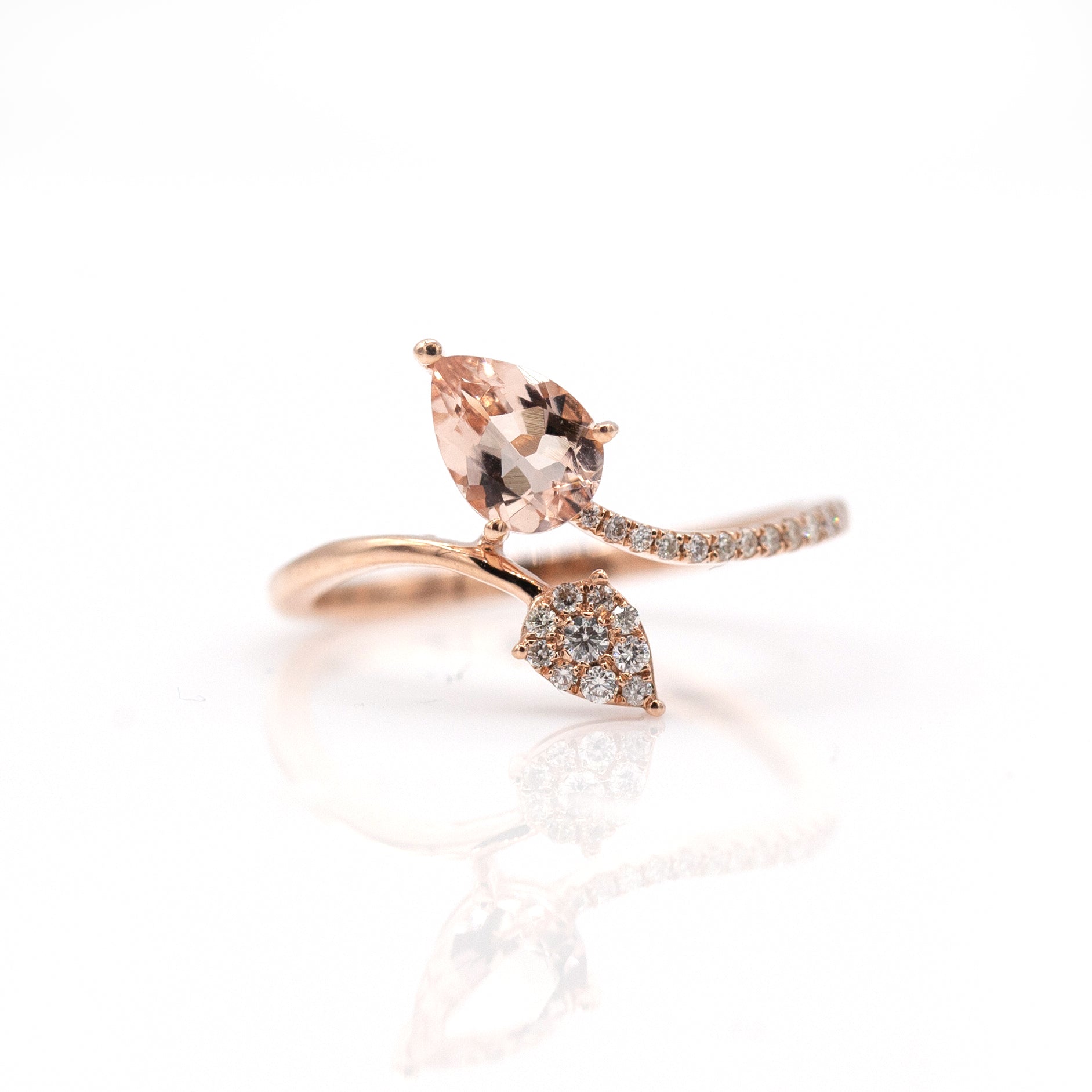 14K Rose Gold Morganite & Diamond Bypass Ring