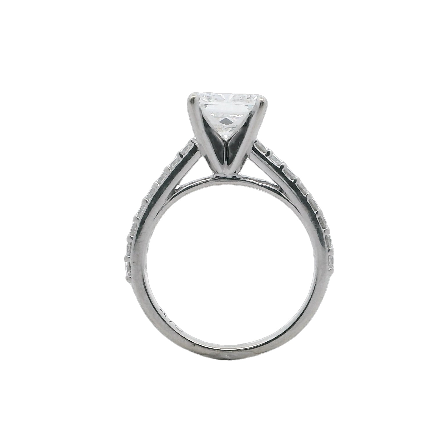Center Stone: 2.20ct Cushion Modified Brilliant Diamond, I/VVS2