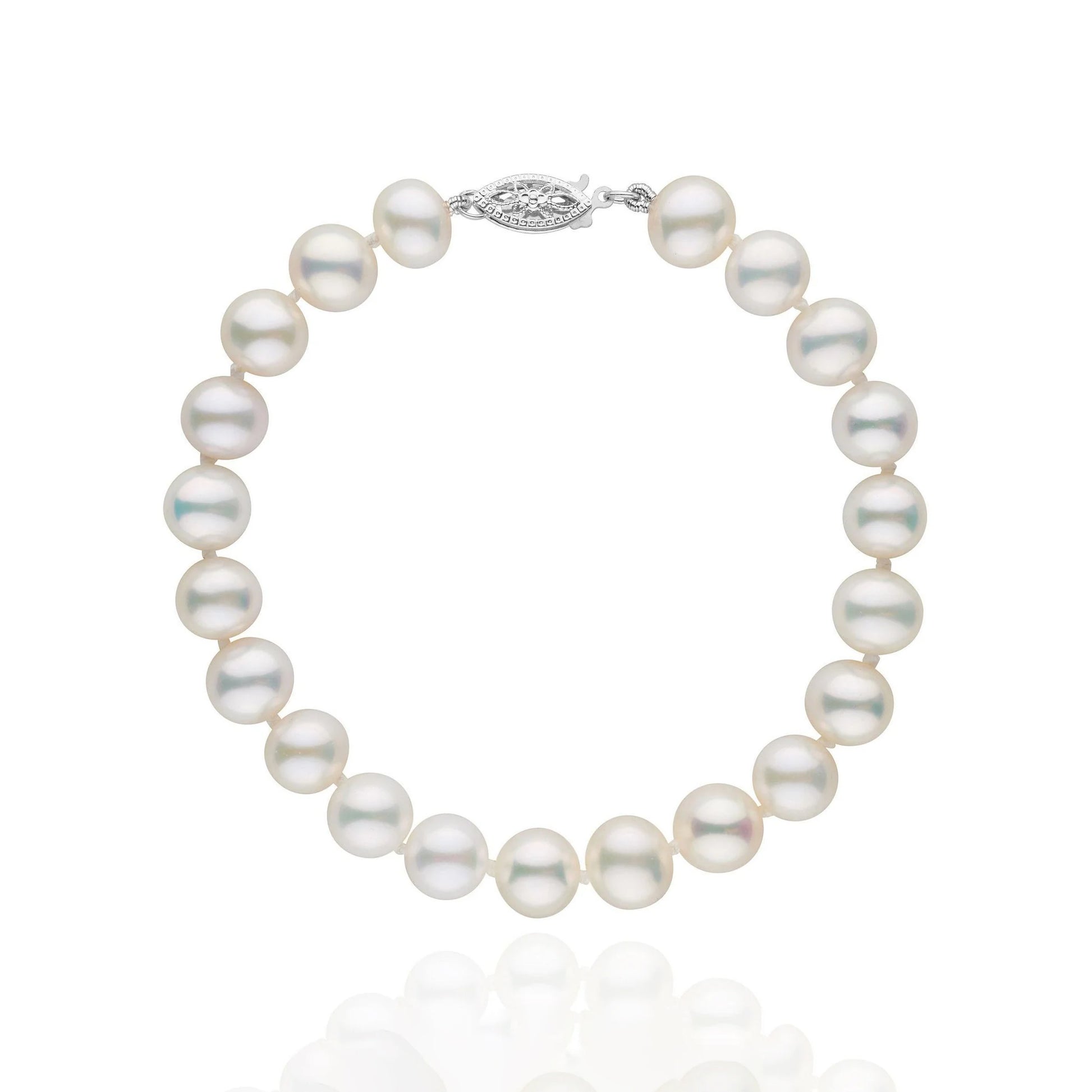 14K White Gold 7-7.5mm Cultured Akoya Pearl Bracelet 7"