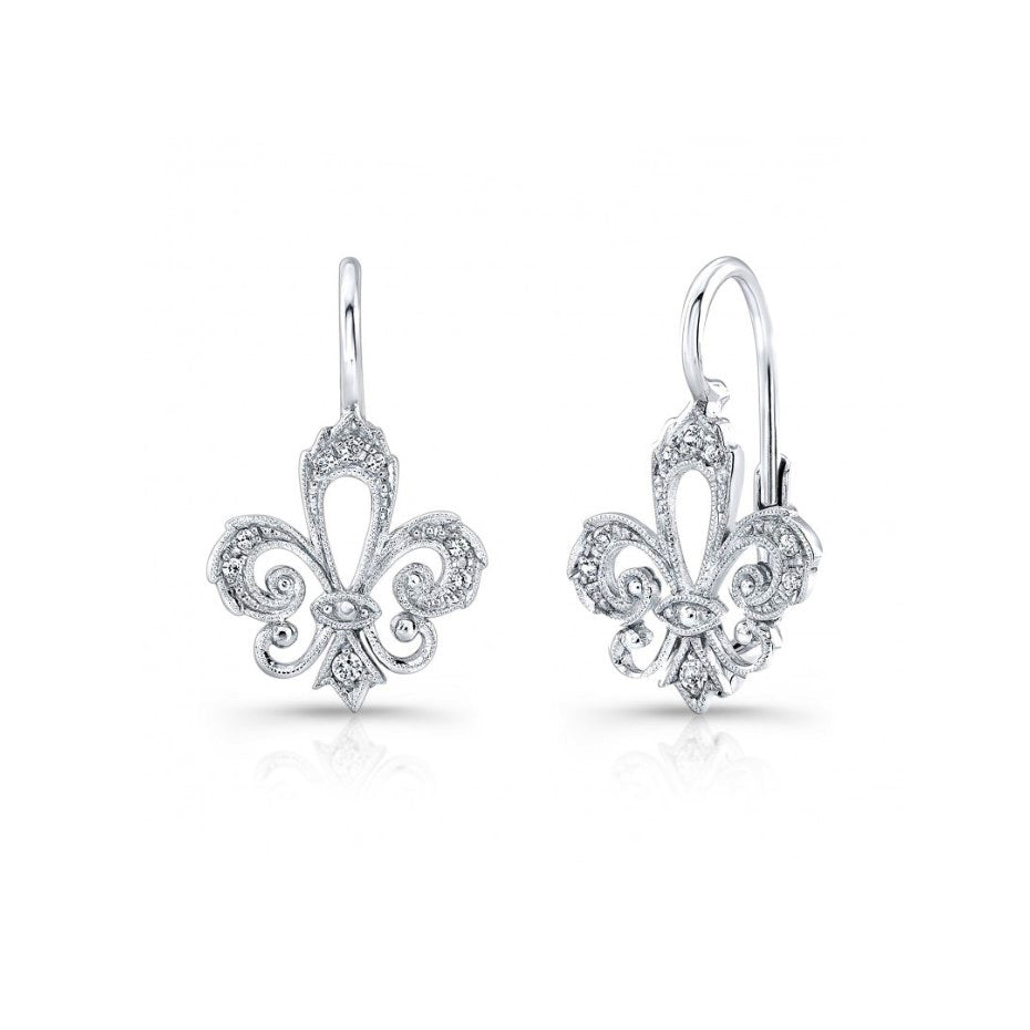 14K White Gold 0.07ctw Diamond Fleur de Lis lever back Earrings