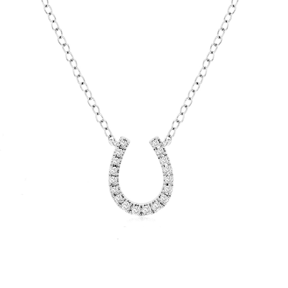 14K White Gold Diamond Horseshoe Pendant