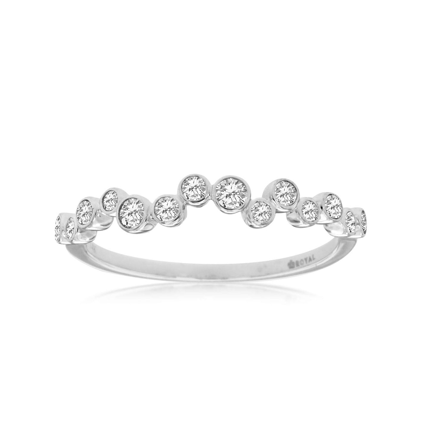 14k White Gold Diamond shapes band, with .26ct total weight bezel-set round brilliant Diamonds