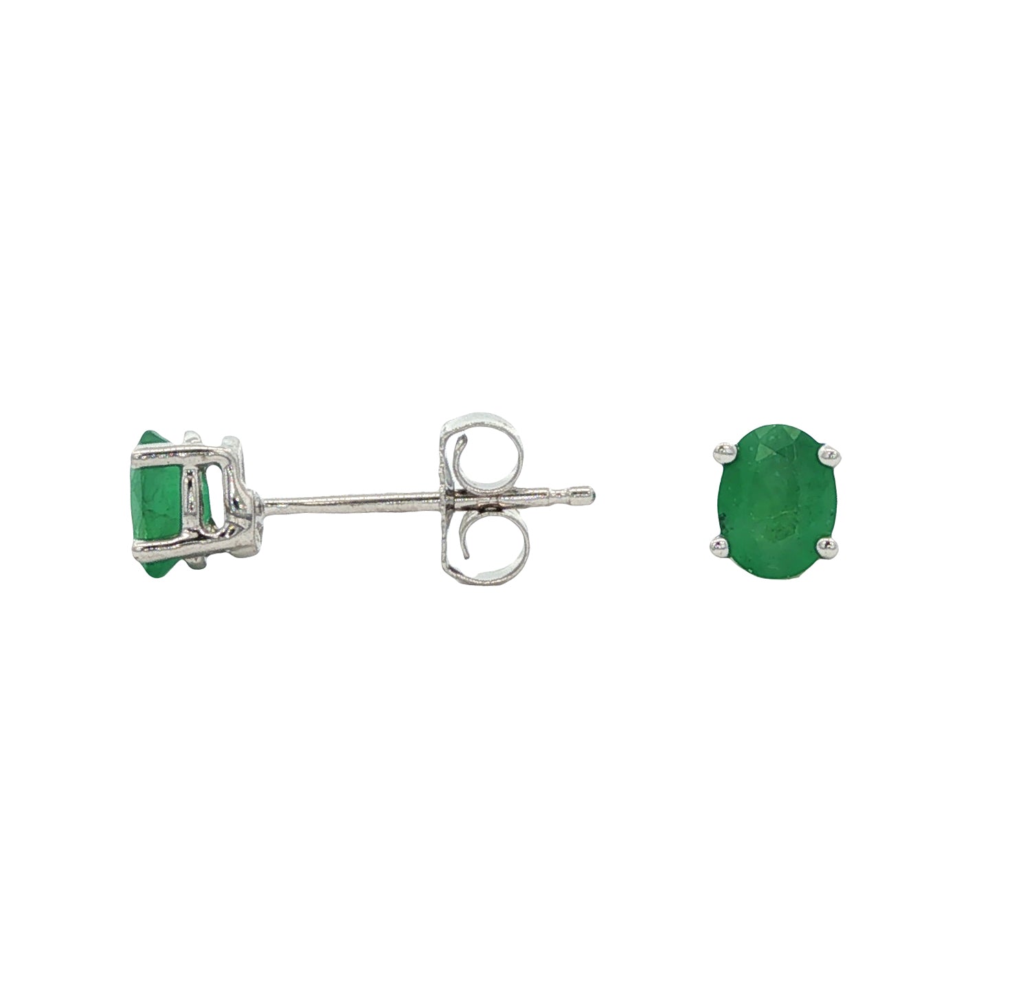 14K White Gold 0.80ct Oval Emerald Stud Earrings
