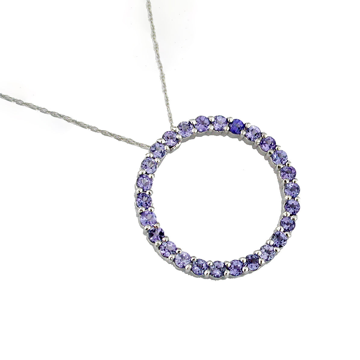 14K White Gold 1.35ctw Tanzanites in a 1" Circle on an 18" Chain
