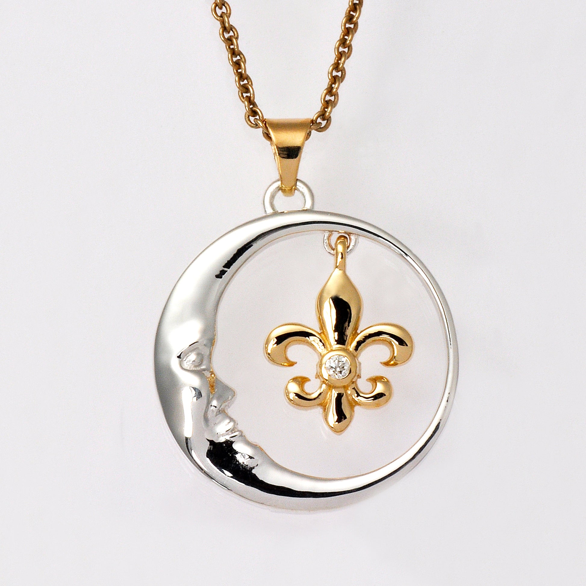 Tom Mathis 14K 2-Tone Crescent Moon & Fleur de Lis Pendant