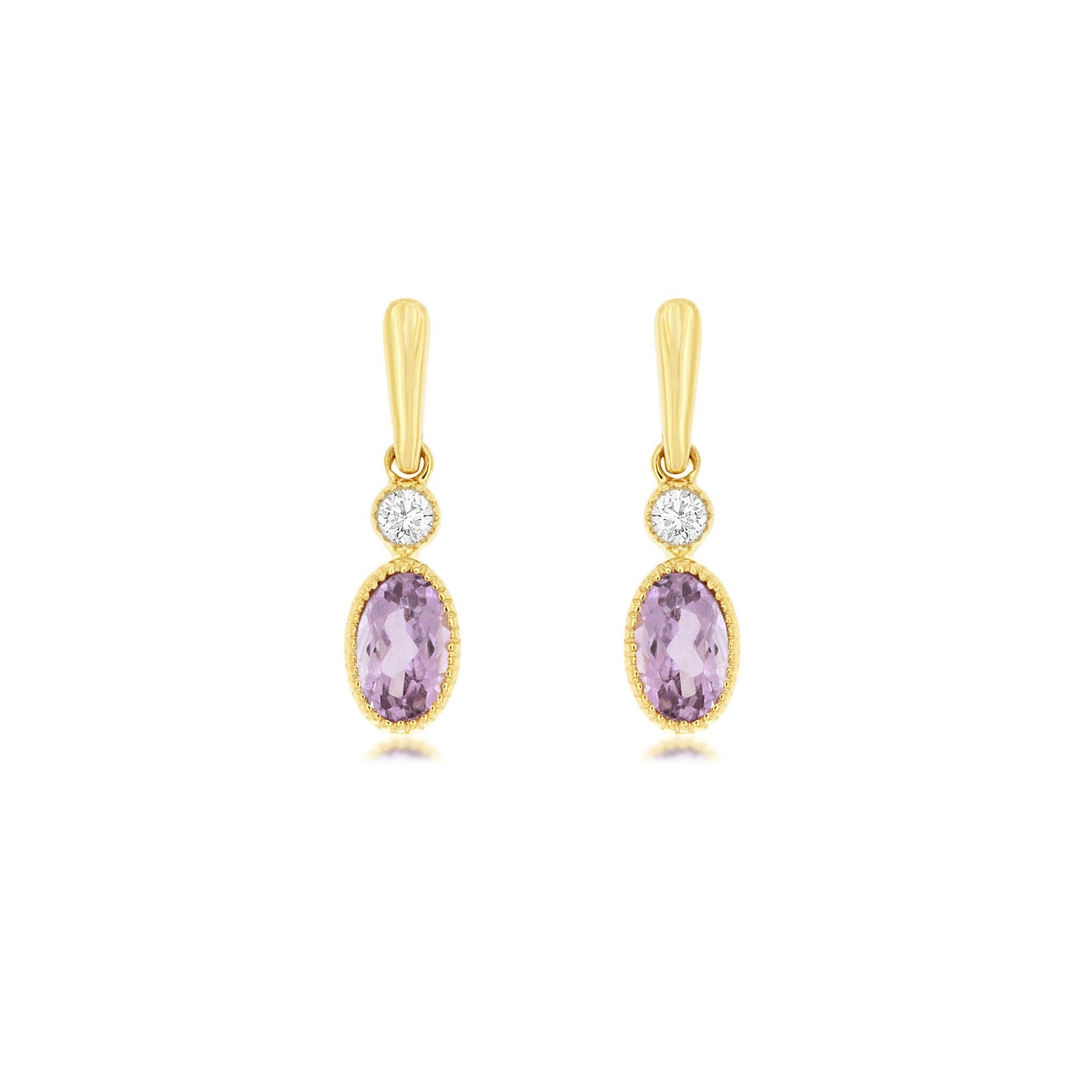 14K Yellow Gold Amethyst & Diamond Post Earrings