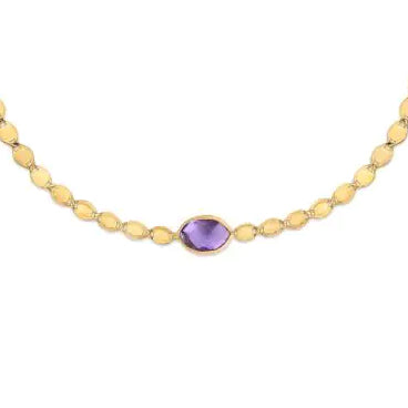 14K Yellow Gold Amethyst Mirrored Chain Necklace