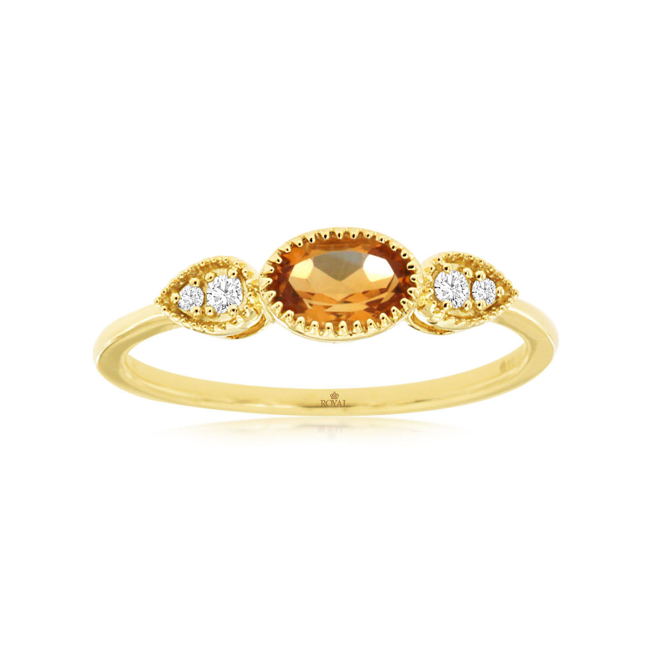 14K yellow gold, featuring Citrine and diamonds with milgrain detailing adding a vintage-inspired touch. Perfect for stacking or wearing alone