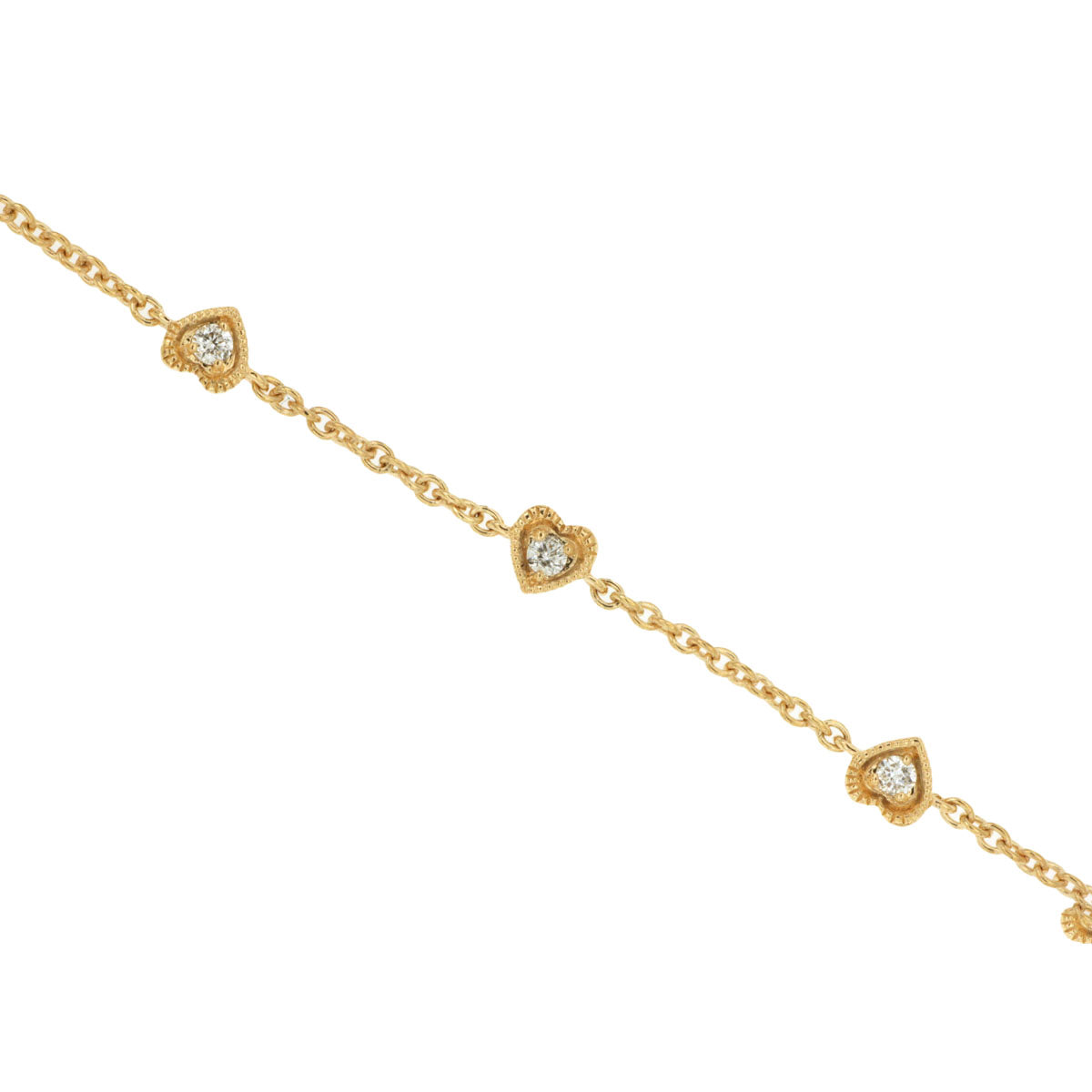 14K Yellow Gold 0.15cttw Diamond Heart Stations Bracelet