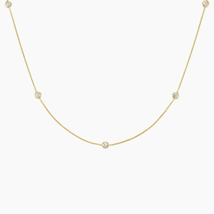 14K Yellow Gold 5 Bezel Set Diamonds Necklace