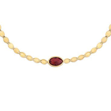 14K Yellow Gold Garnet Mirrored Chain Necklace