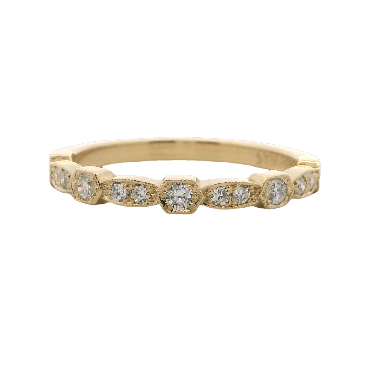 14K Yellow Gold Lab-Created Diamond Band featuring Hexagon and Marquis Shapes around half of the band