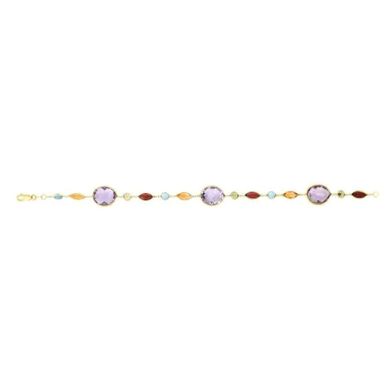 14K Yellow Gold Bracelet with Garnet, Citrine, Peridot, Blue Topaz, and, Amethyst Bezel Set on a 7.5" Chain