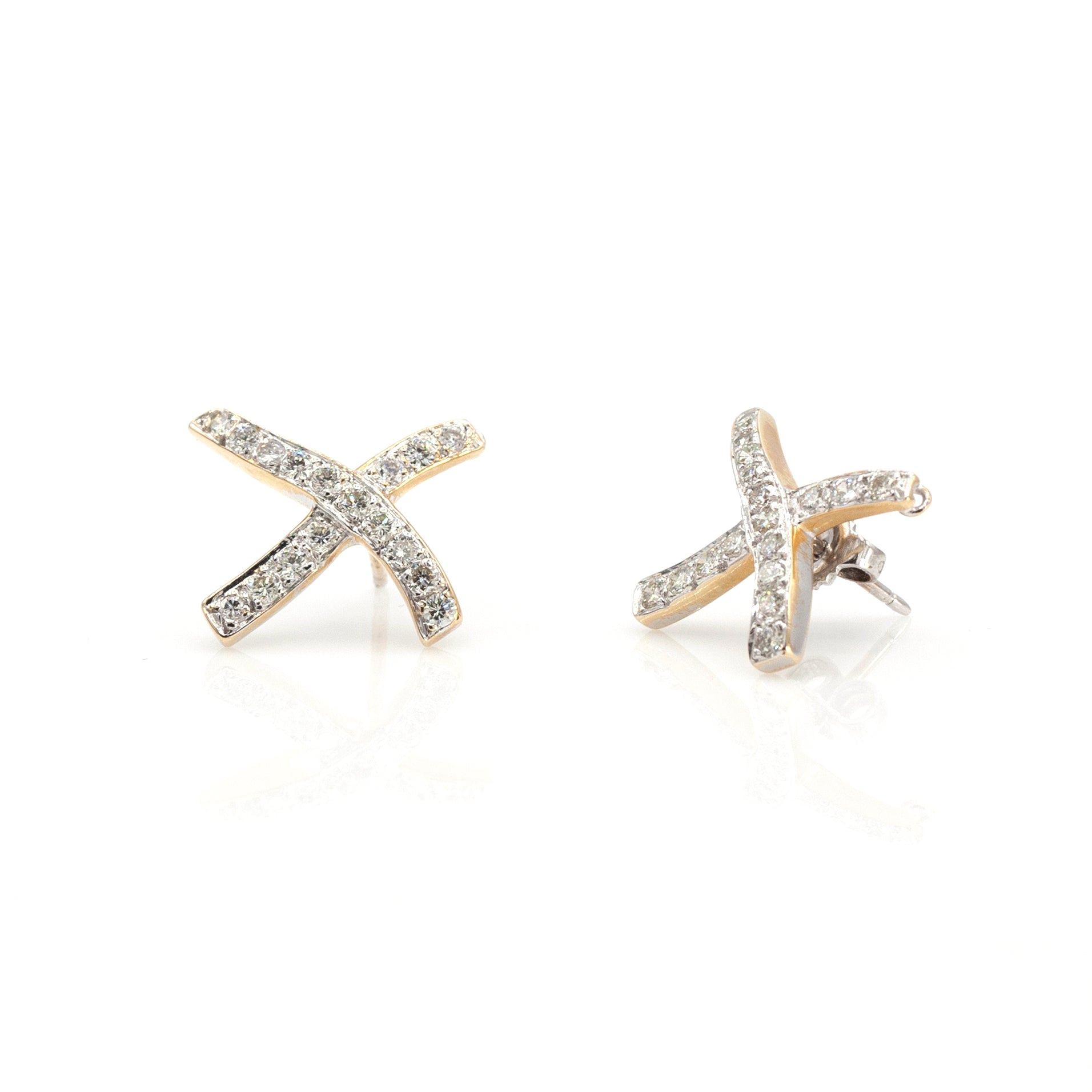 18K Gold 1.0cttw Diamond X Post Earrings, G/H VS