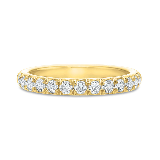 18K Yellow Gold French Cut Diamond Band, stones set halfway around the band.