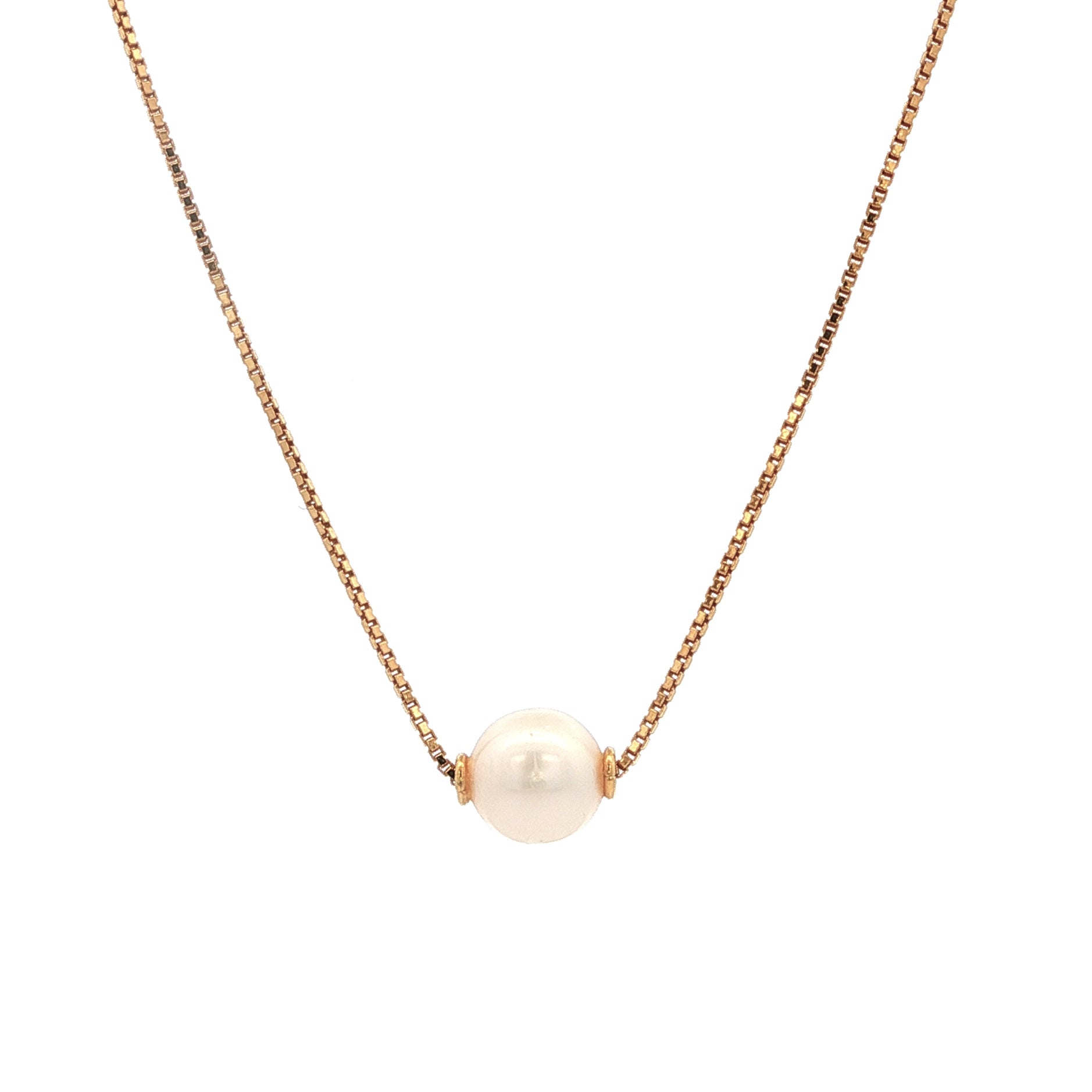 18k Yellow Gold 7.8mm Pearl Slide Pendant on an 18K Yellow Gold 1mm 17" Box Chain