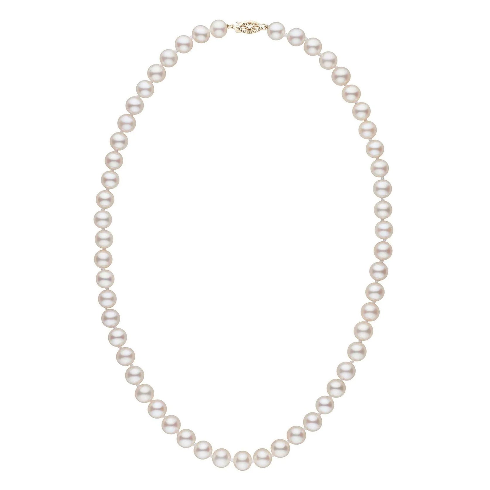 Akoya Cultured Pearl Necklace, hand-knotted 7-7.5mm AA White Pearls with a 14K White Gold Clasp, 20"
