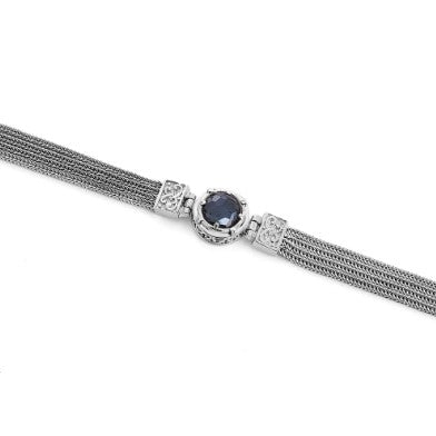 Sterling Silver Bracelet with an 8mm Hematite doublet, layered with beautifully faceted clear Quartz.