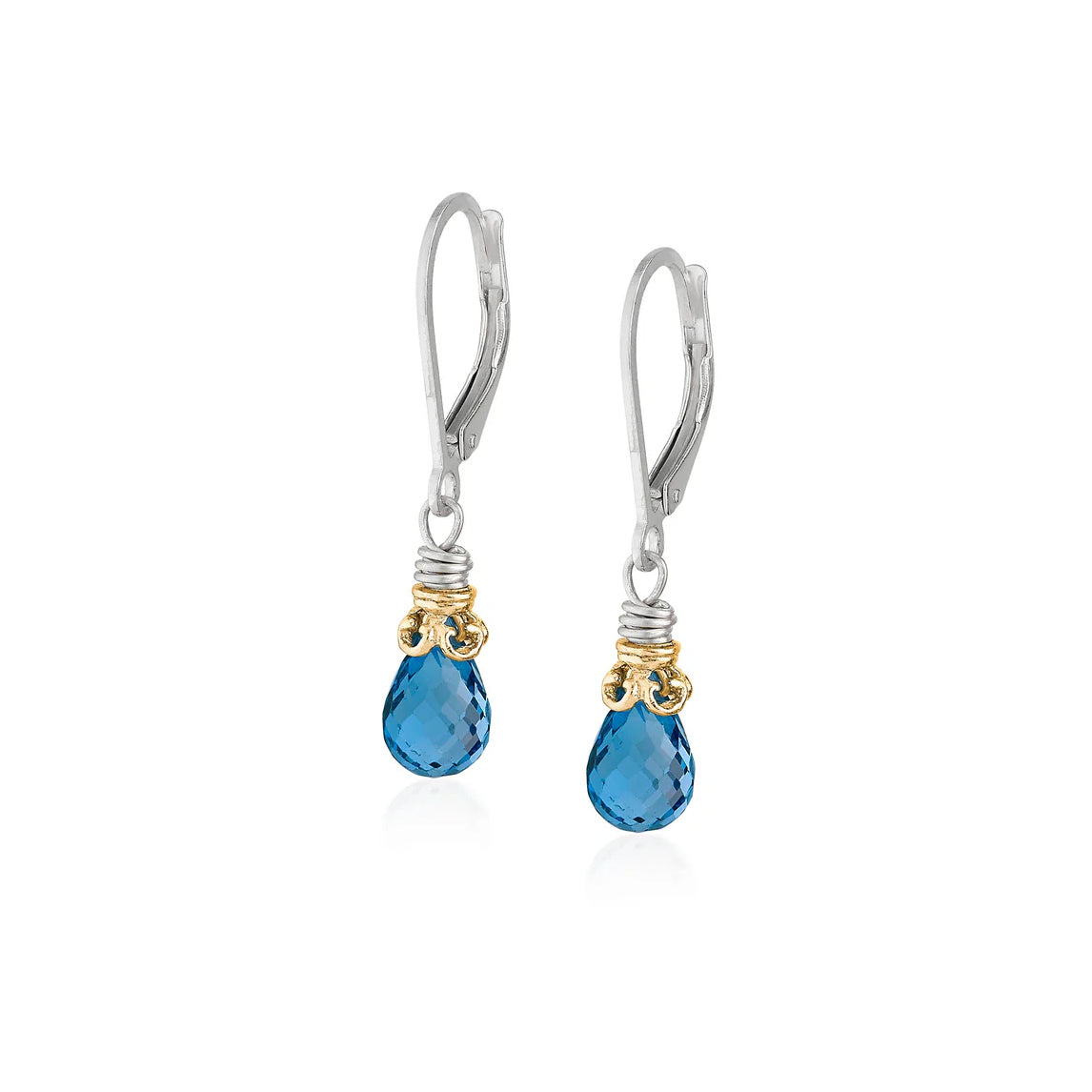 Sterling Silver & 18k Yellow Gold 6.5x10mm Faceted London Blue Topaz Briolette Earrings
