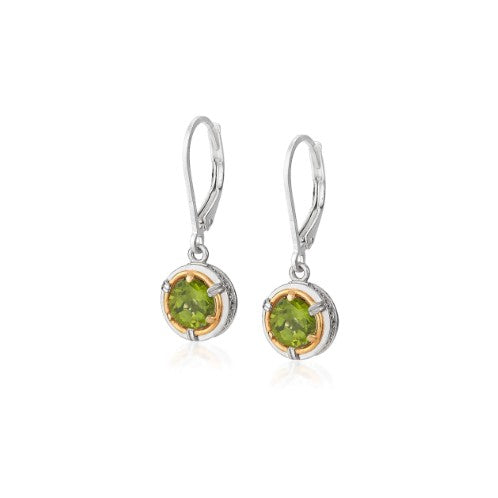 Sterling Silver & 18k Vermeil Earrings with beautifully faceted 6mm Peridots on leverbacks.