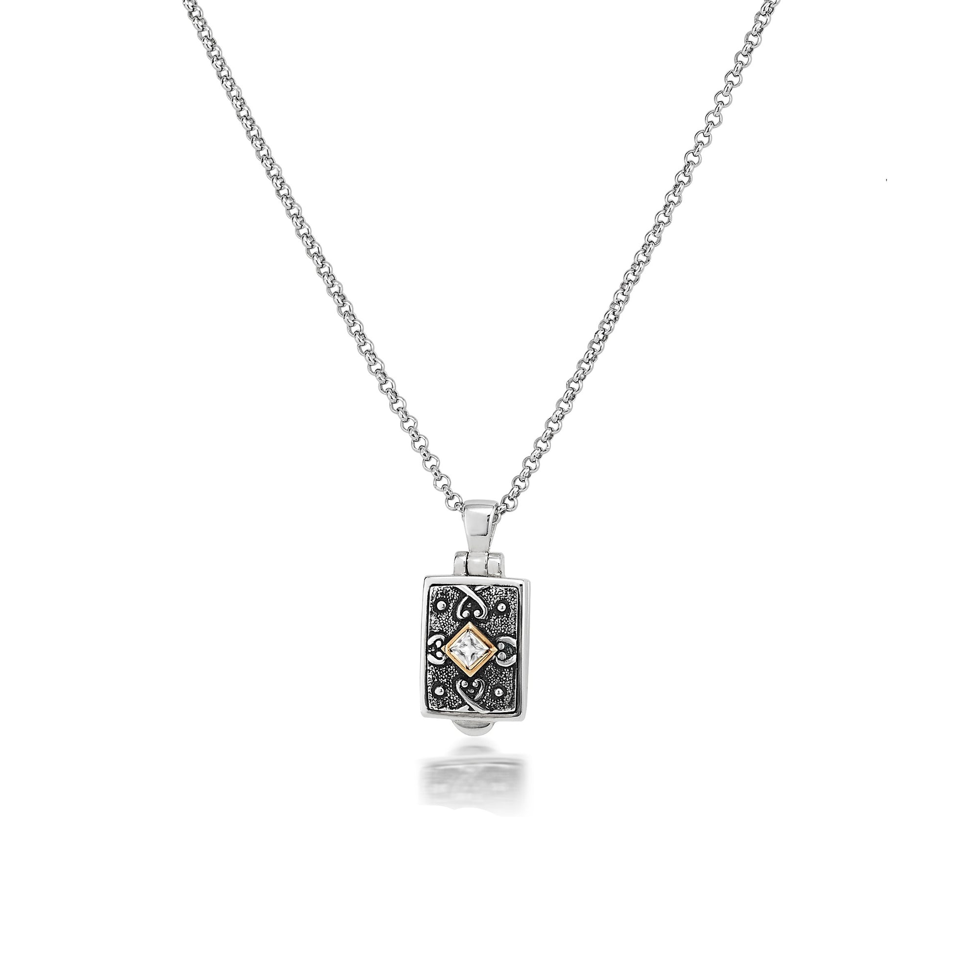 Sterling Silver Petite 10x17mm Rectangular Locket with a White Topaz set in a 14K Yellow Gold bezel