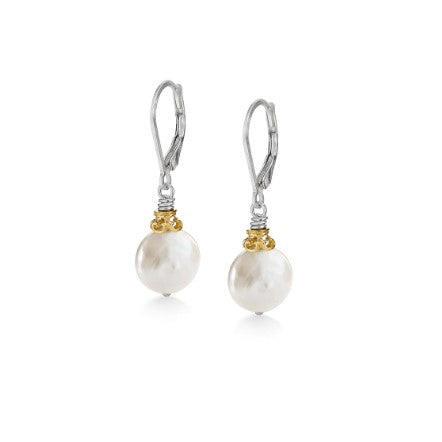 Sterling Silver & 18K Vermeil 10mm Coin Pearl earrings.