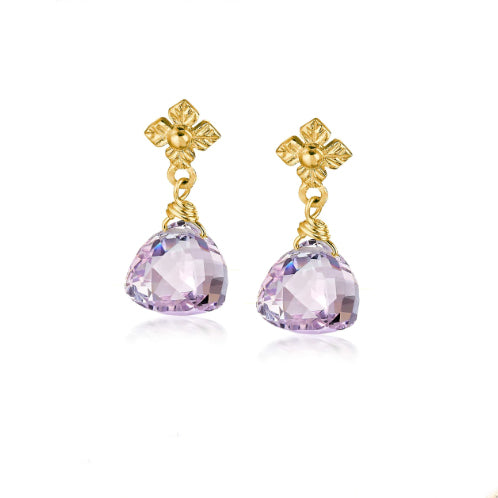 18K Vermeil beautifully faceted 11mm Trillium-cut Lavender Amethyst on posts