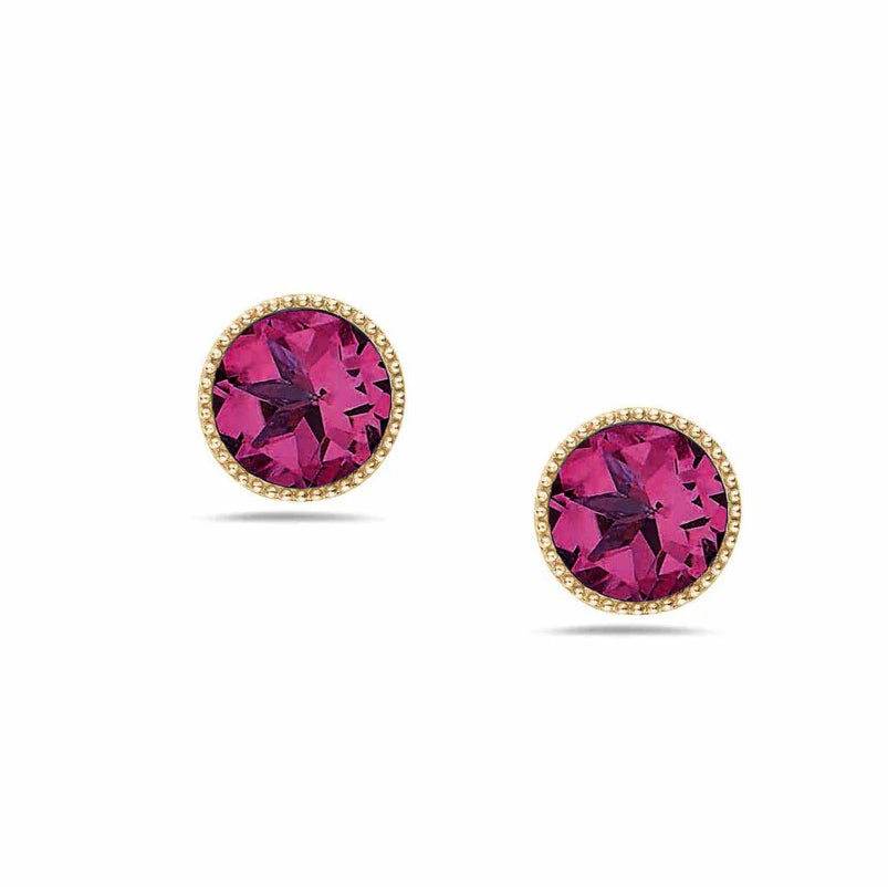 Sterling Silver & 18K Vermeil 7mm round Rhodolite Garnet stud earrings.