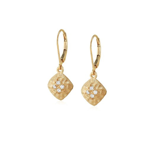 Sterling Silver & 18K Vermeil Hammered Diamond-shaped Petite White Sapphire Earrings