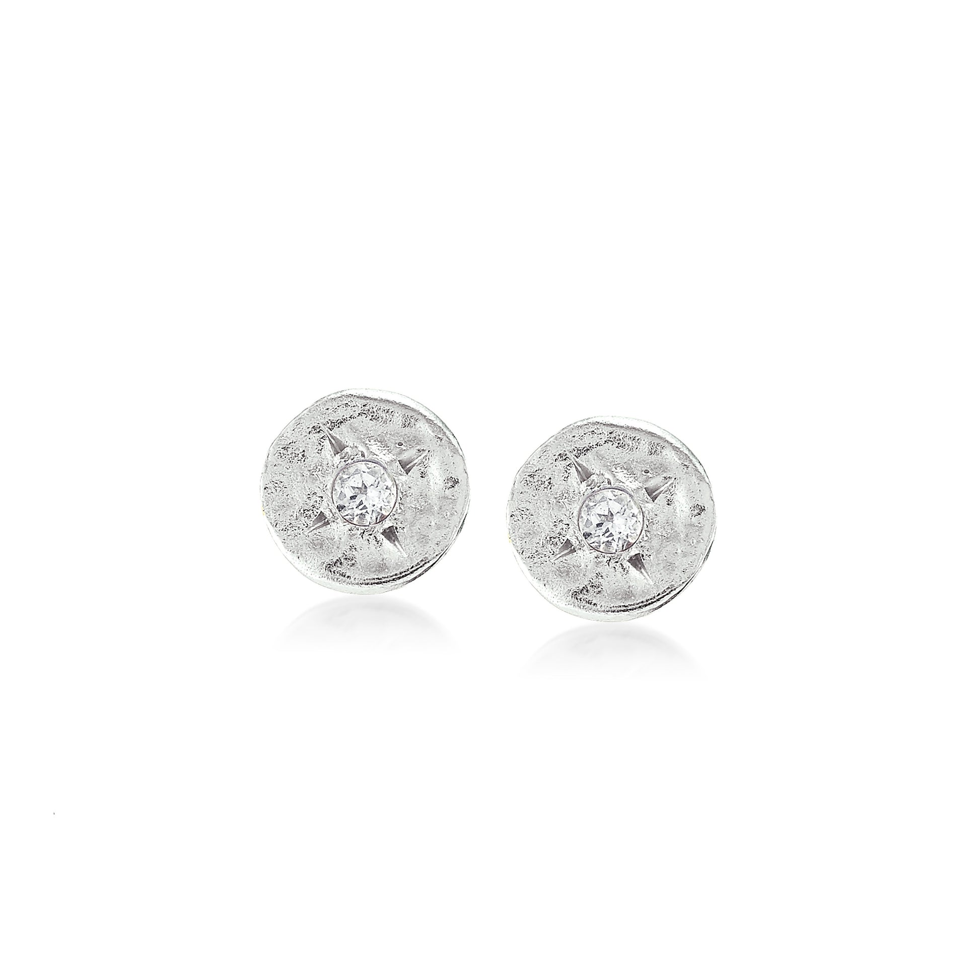 Sterling Silver Hammered Petite White Sapphire Disc Earrings