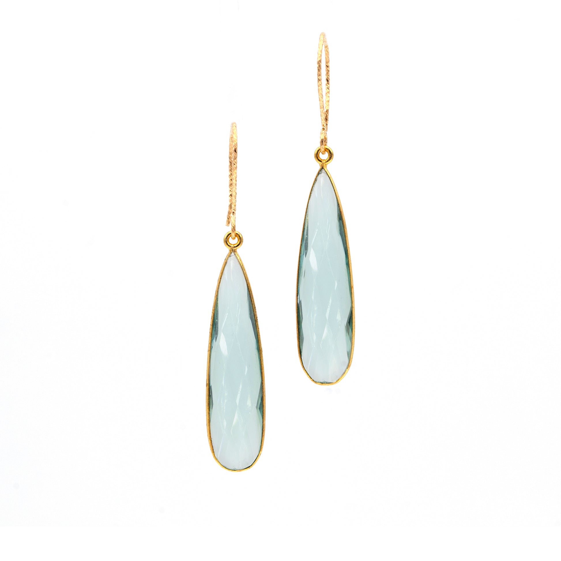 Long Aqua Quartz Teardrops on 14K gold-filled glitter wires.