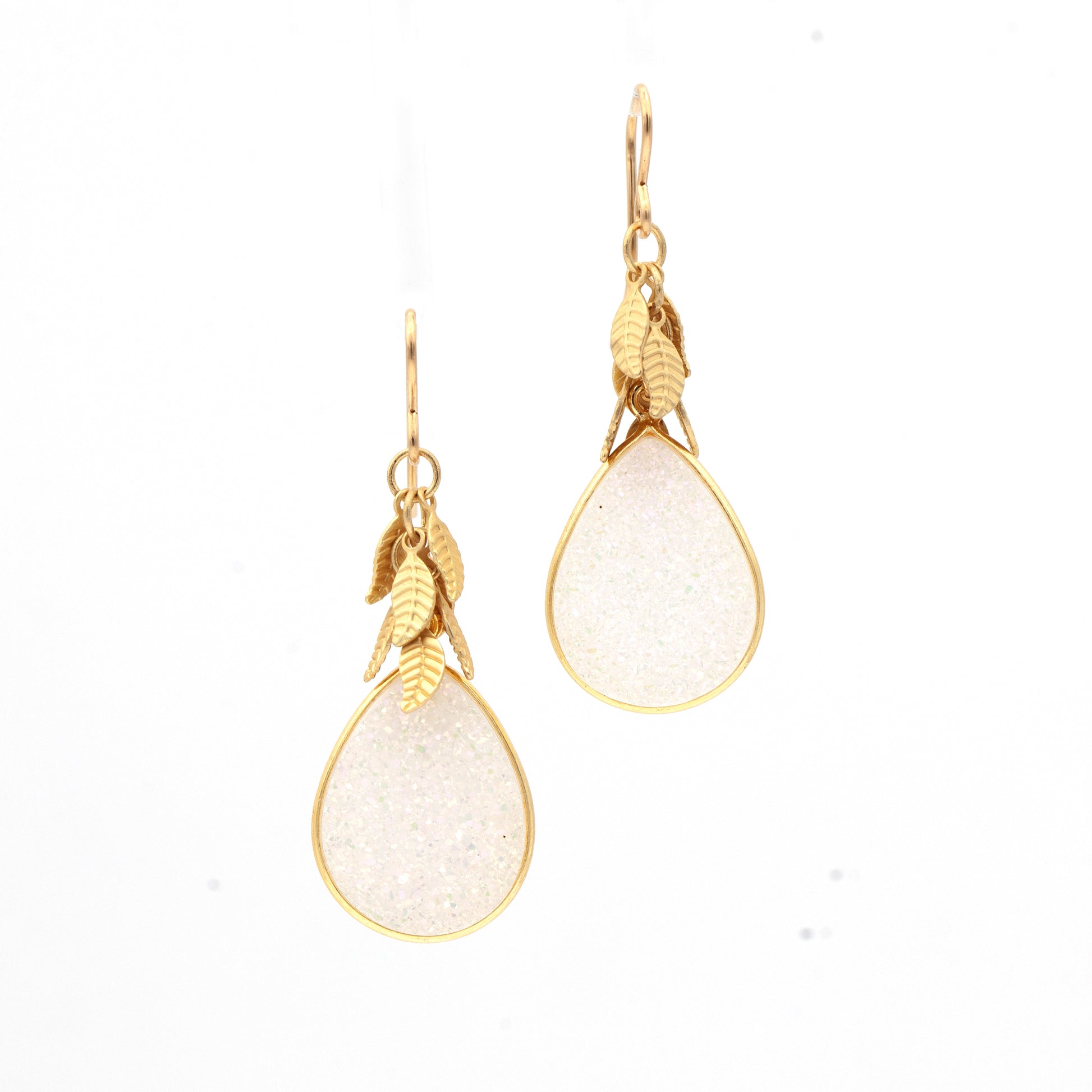 Druzy Quartz & 14K Gold-Filled Leaf Dangle Earrings