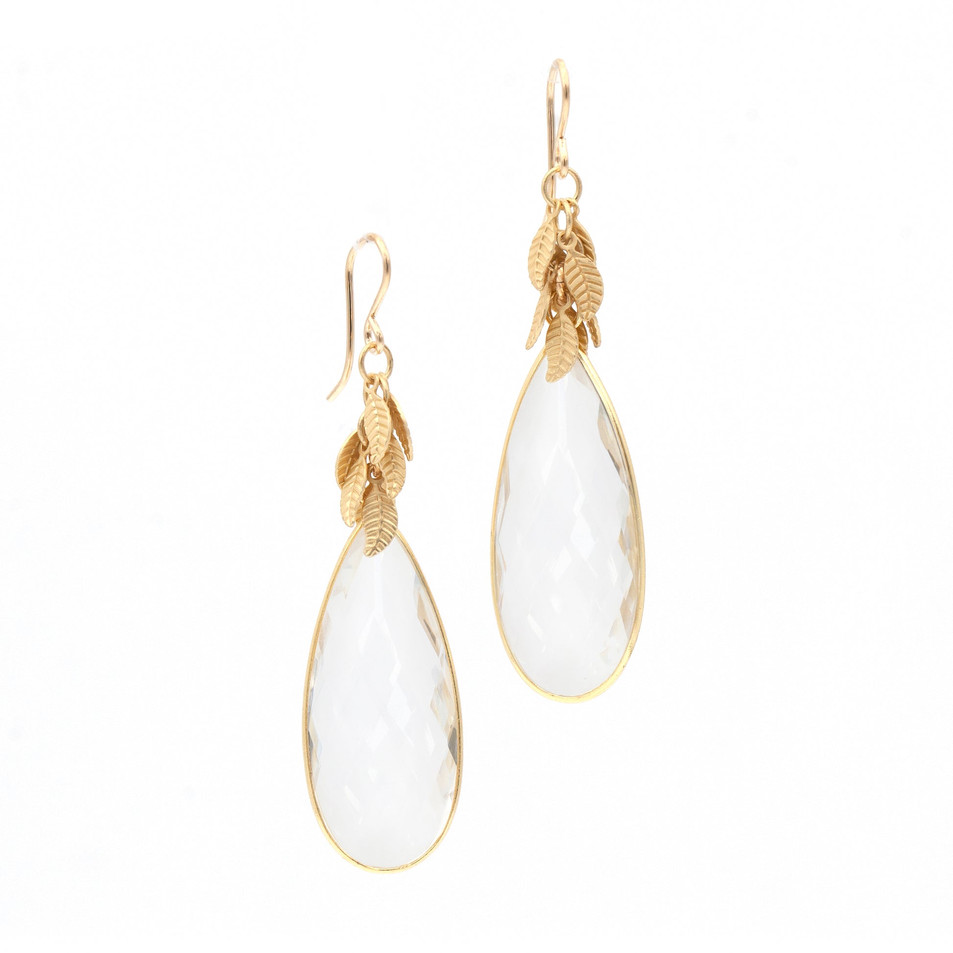 Clear Quartz 14K Gold-Filled Leaf Dangle Earrings