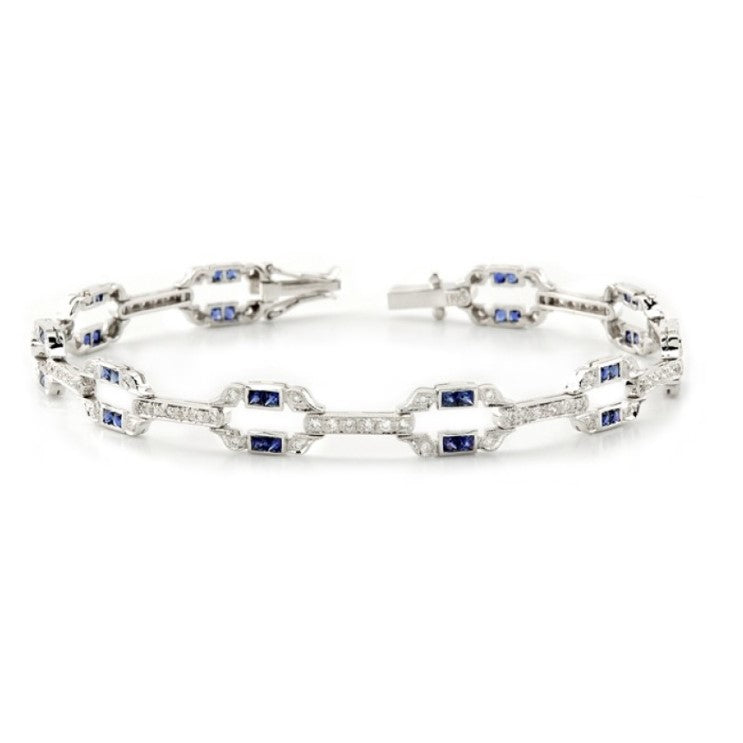 14K White Gold 0.55CT Diamond & 0.95CT Sapphire Bracelet