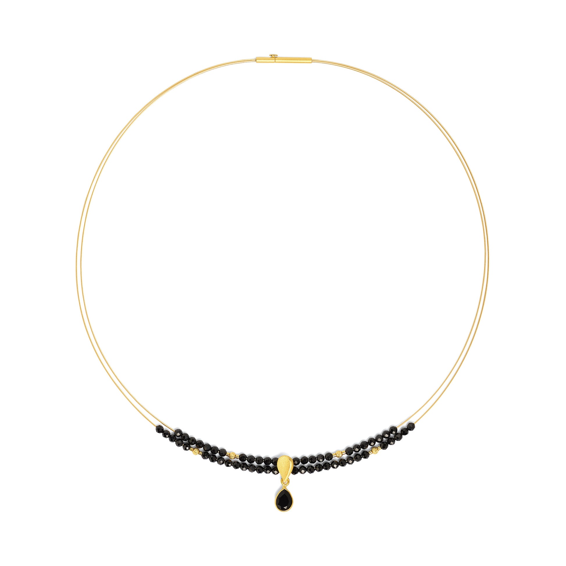 Black Spinel Double Strand Center Black Spinel Teardrop Collar